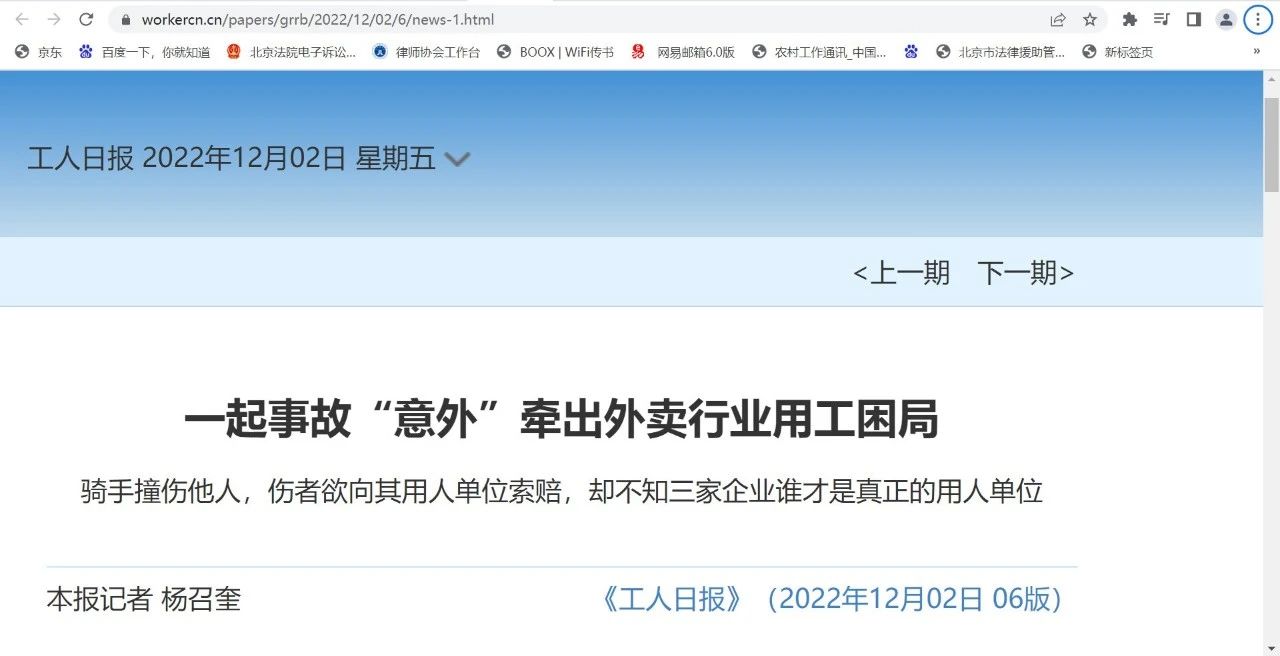 今天,《工人日报》第5版和第6版的文章,分别引用了我所两位律师的评论观点。