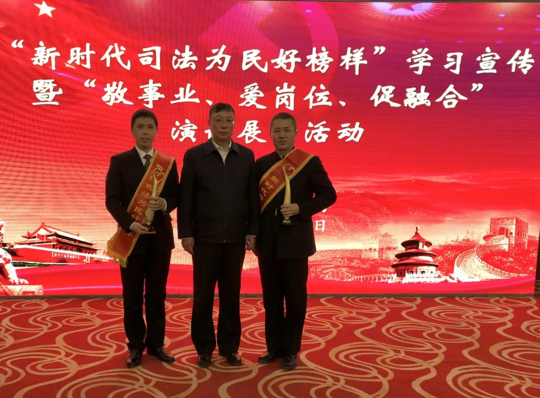 2019年,时福茂律师被评选为全国新时代司法为民好榜样,与北京市司法局党委书记苗林、著名公益律师佟丽华合影