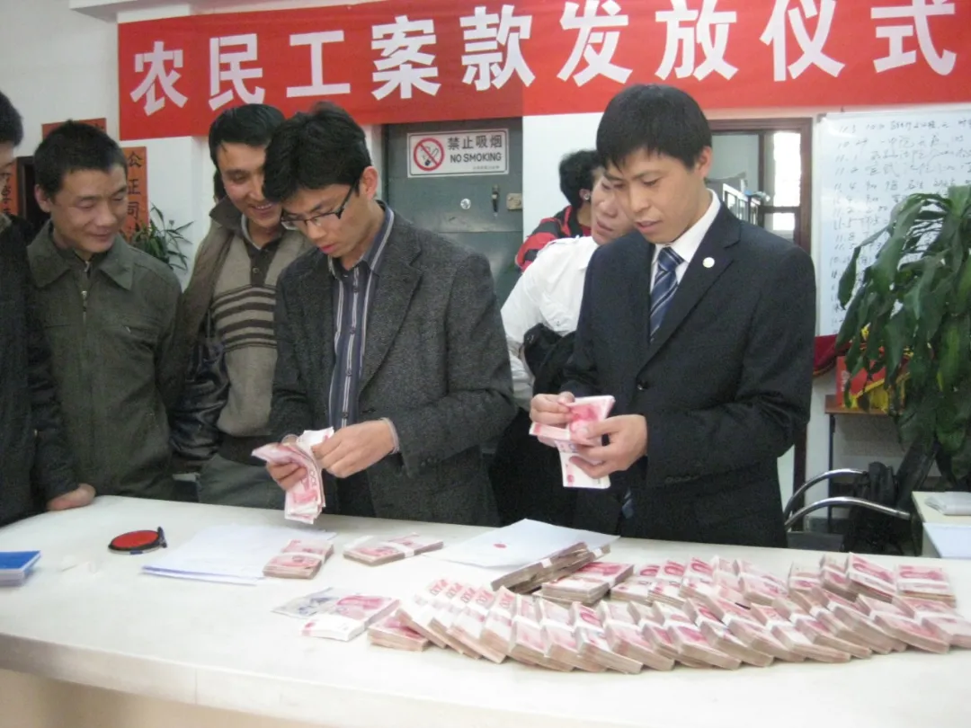 时福茂律师代理法律援助案件2000余起,涉案标的超亿元。图为帮北京市卫生防疫技术服务公司原职工曹家峰等20人讨回工资60余万元