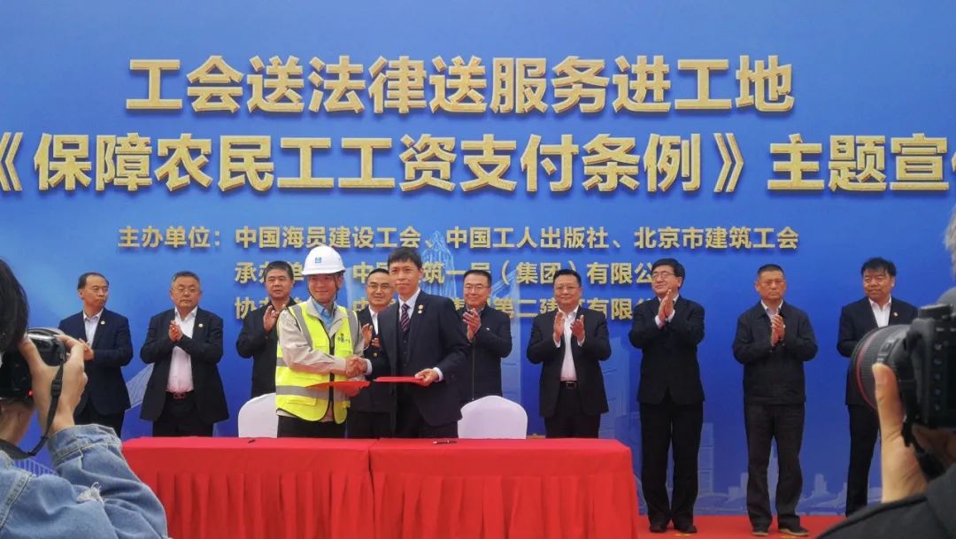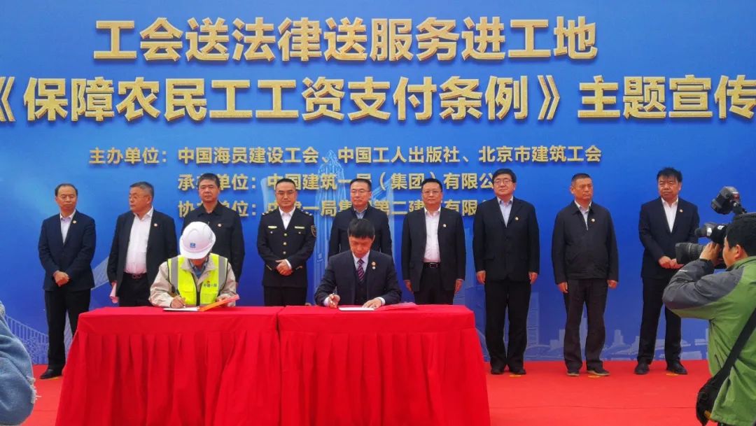 今天,在《保障农民工工资支付条例》实施一周年之际,北京福茂律师事务所参加了由中国海员建设工会联合中国工人出版社、北京市建筑工会、中建集团举办的“工会送法律送服务进工地暨贯彻《保障农民工工资支付条例》主题宣传活动”。