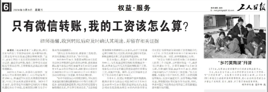 近日,《工人日报》报道了在西安发生的这样一个“既没有签订劳动合同,又是通过微信转账发工资,劳动关系确认困难”的职工维权案例,北京市福茂律师事务所律师张志友针对该案例做权威解读。张志友律师提醒,为避免日后产生纠纷,劳动者在收到微信转账后,应及时通过文字、语音等确认转账用途,并根据实际情况留存作为证据。